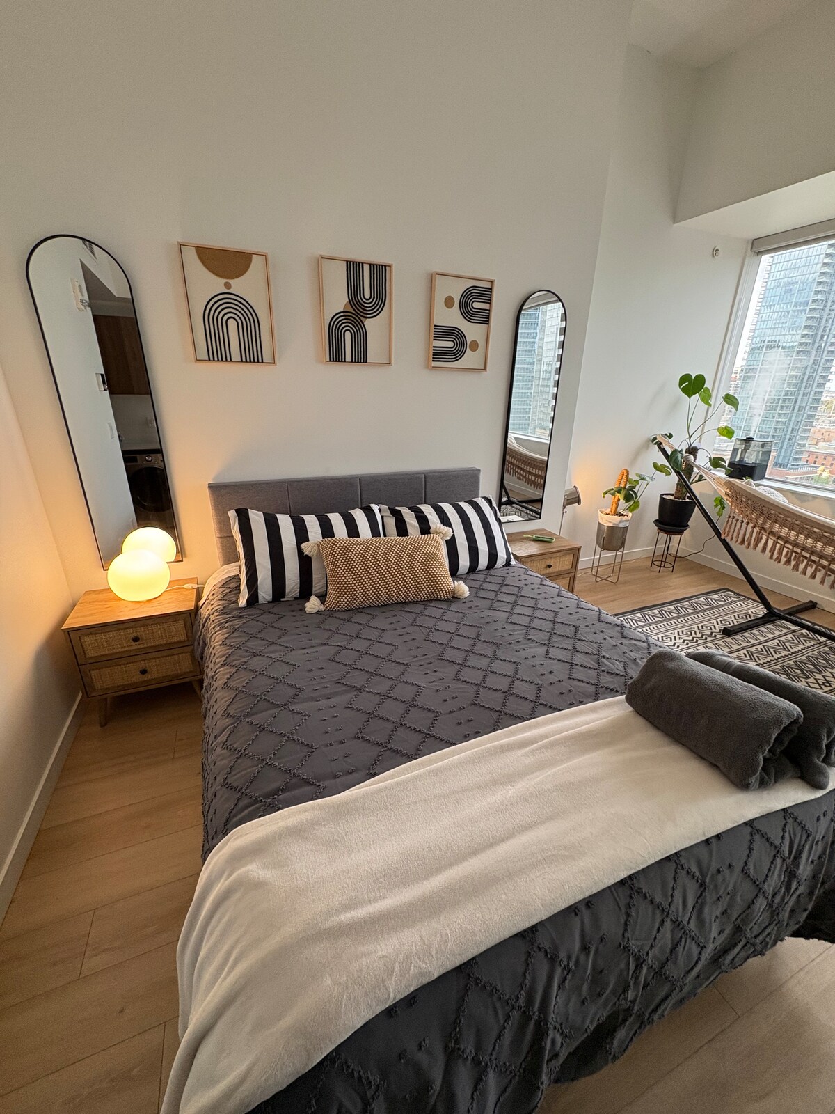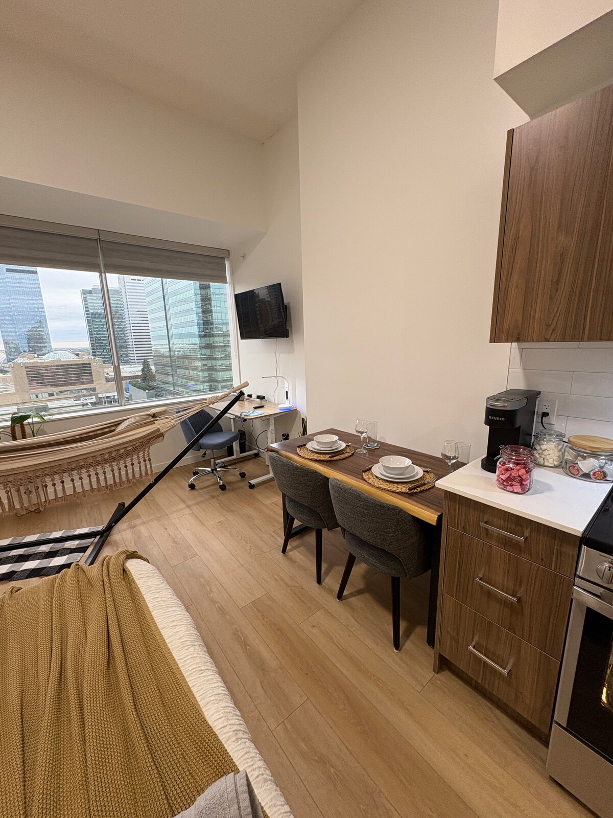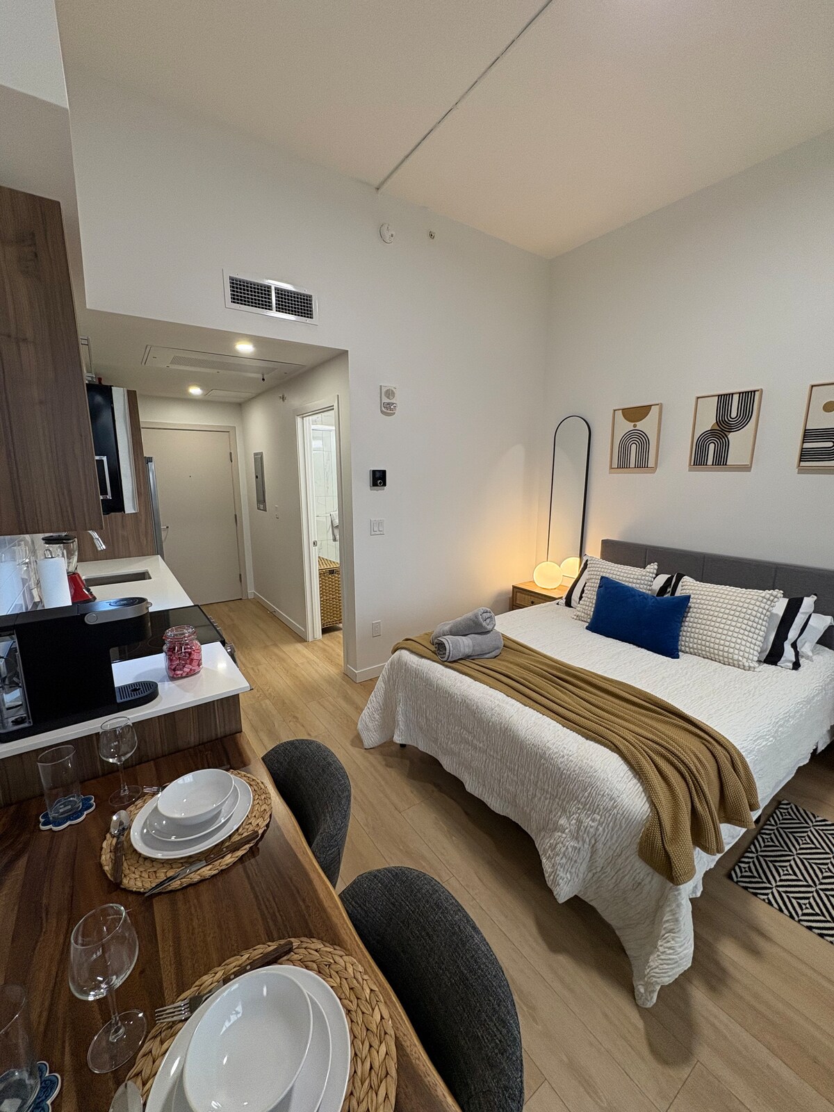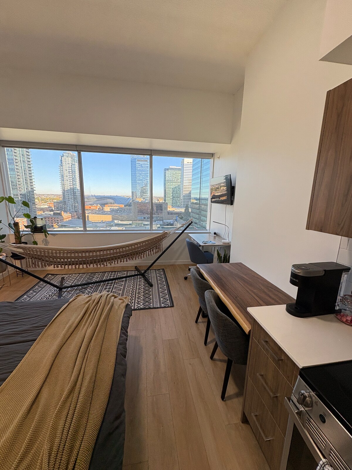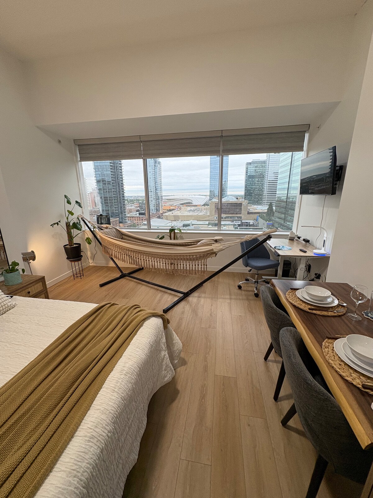 EdmontonThe whole group will enjoy easy access to everything from this centrally located place. In front of the building has a Good Life Fitness and Starbucks and Timmies The building has a gym, Kitchen, Working room, Gaming room with a huge tv and washroom. A Yoga/ Dance / Cry room, washroom inside the gym and a free water fountain.